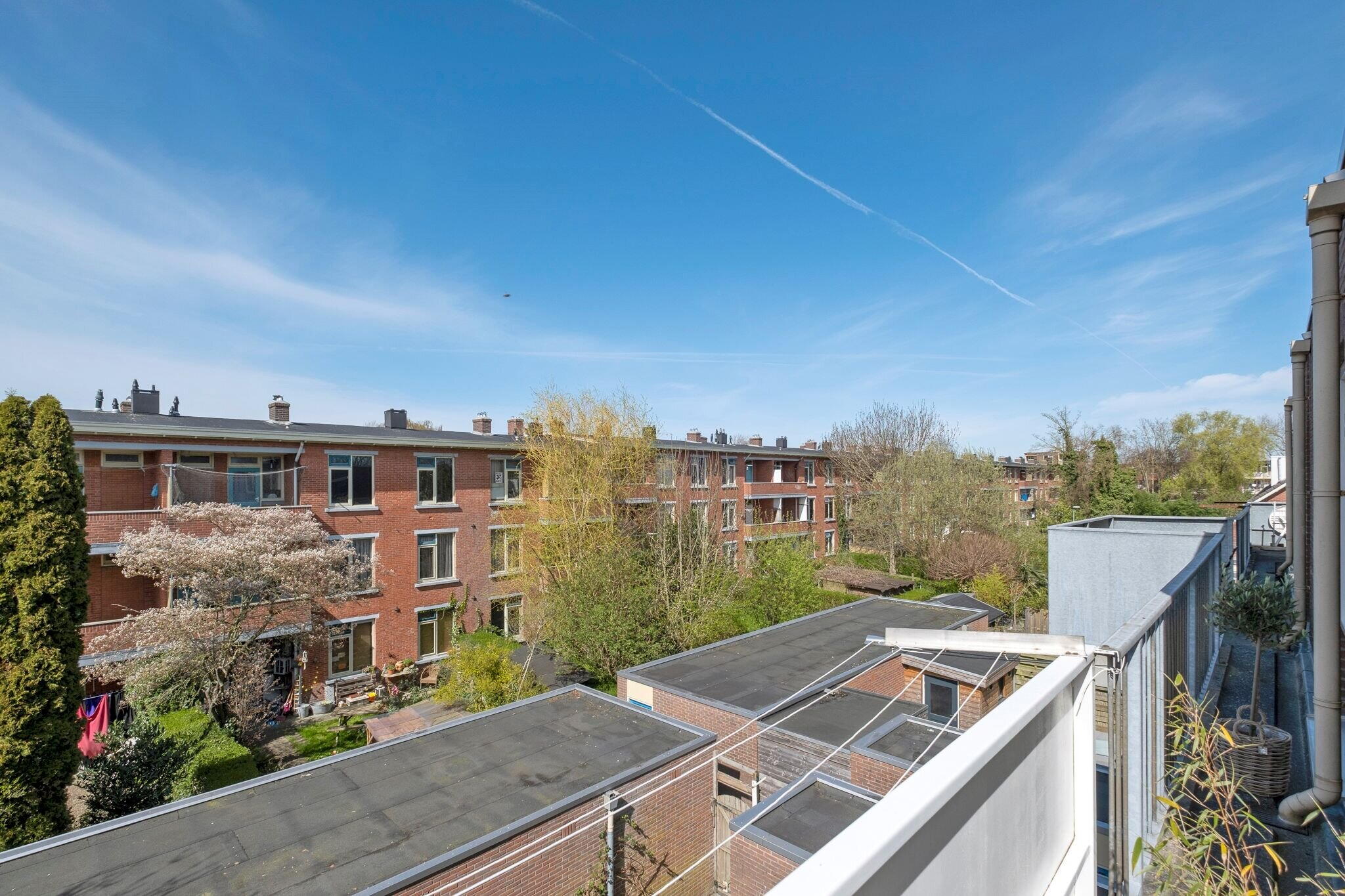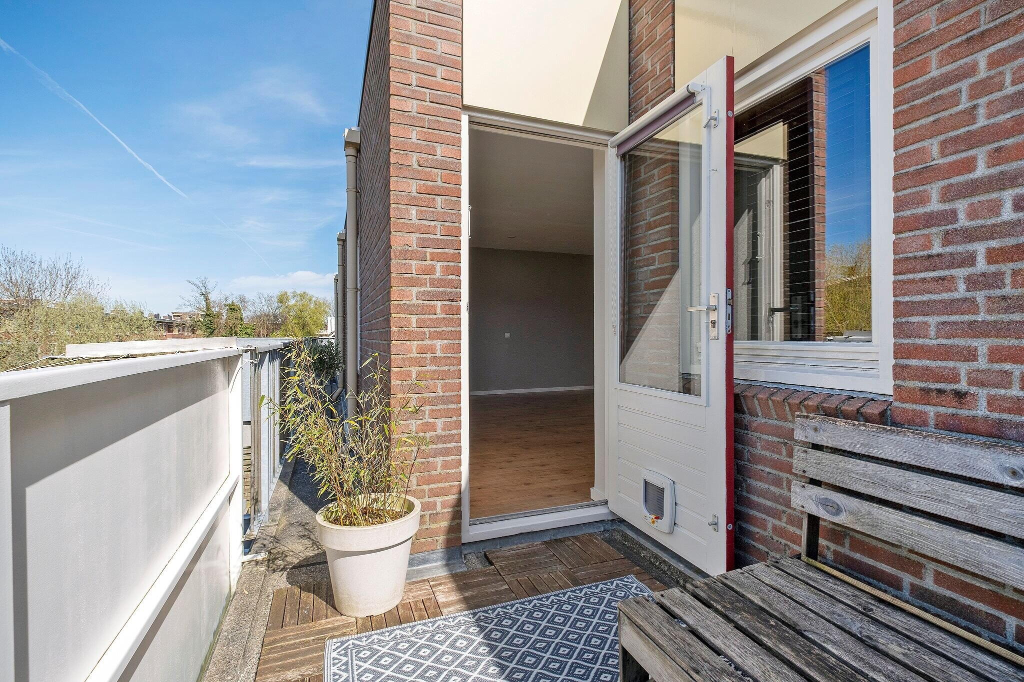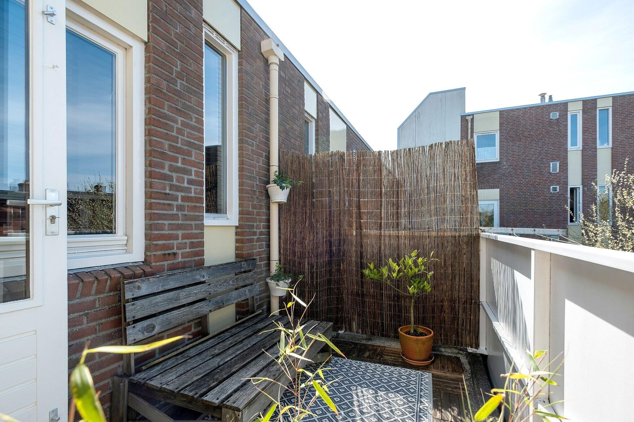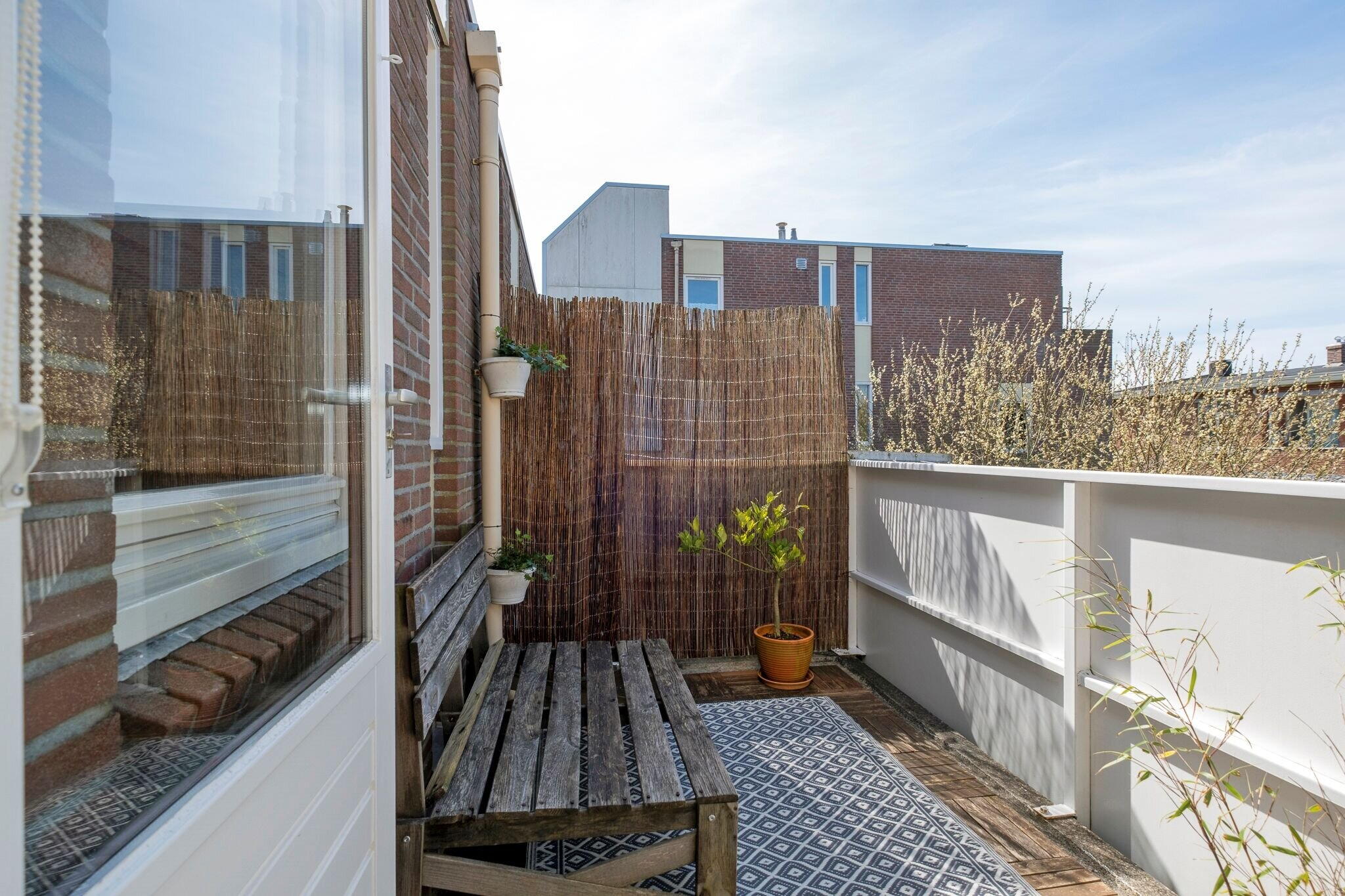 Het balkon (ca. 8 m² via de woonkamer bereikbaar) ligt op het westen en is een fijne plek om van de middag- en avondzon te genieten.