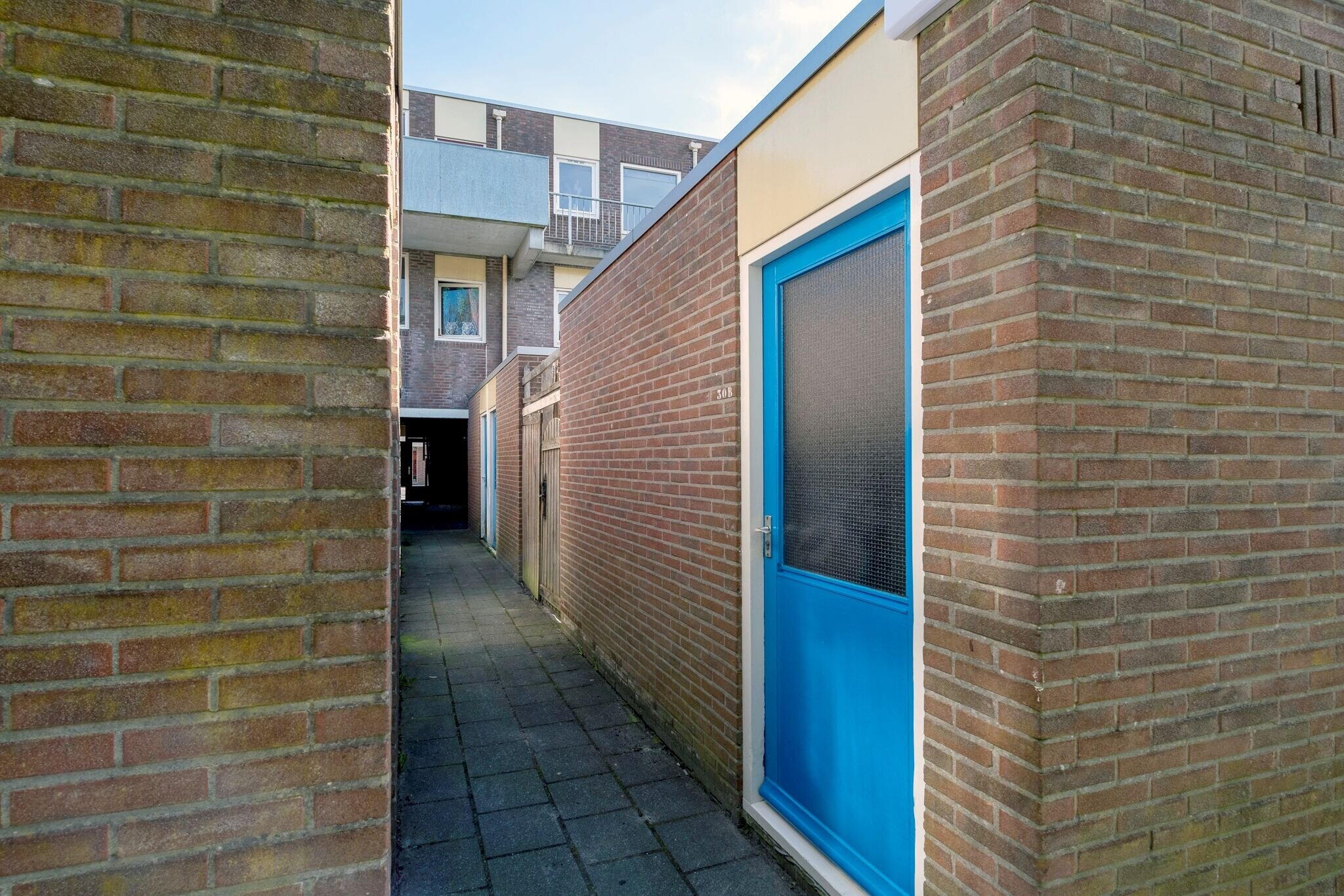 Gemeenschappelijke entree met brievenbusbord, intercom en eigen berging (ca. 8m²).