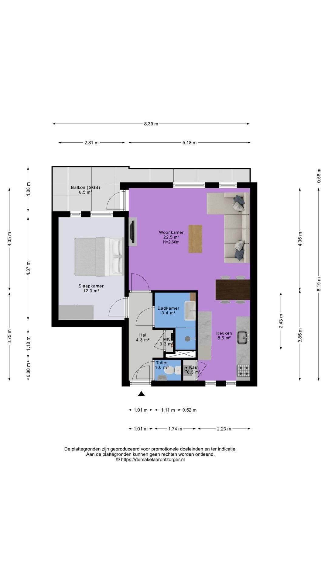 Het appartement is gemeten op basis van de Branche Brede Meetinstructie (BBMI). Deze meetinstructie is bedoeld om op een eenduidige manier de gebruiksoppervlakte weer te geven. De meetinstructie sluit verschillen in meetuitkomsten niet volledig uit, bijvoorbeeld door interpretatieverschillen, afrondingen of beperkingen bij het uitvoeren van de meting. Lees de volledige omschrijving